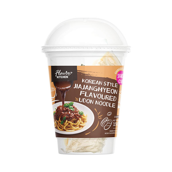1.Tear off the plastic film outside the cup, open the lid of the cup, tear open the packaging bag of noodles and sauce, pour it into the cup, add 20ml of water and close the lid.